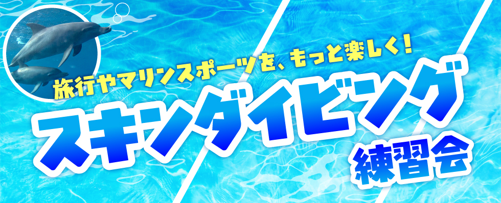 プールにてスキンダイビングの実技やダイビング器材の取扱い方法を習得します。慣れてくると水の中で呼吸できるので、プチダイバー気分が味わえます。