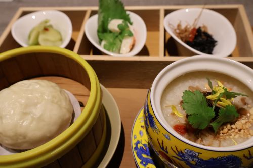 薬膳と野菜の身体に優しい創作中華 ヴィーガンレストラン【JOGA(ジョーガ)vegan veggie 嫦娥】の薬膳お粥セットをお楽しみいただきます。