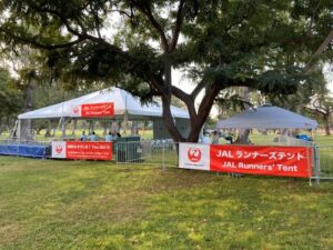 日本航空を利用するので、エントリーの割引きやゴール後のJALランナーズテント利用などの特典あり