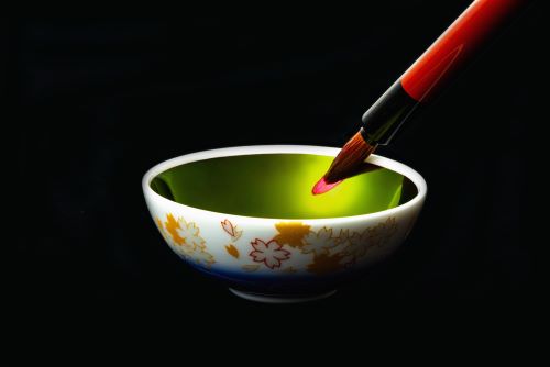 熟練の職人の手による伝統の「紅」は、おちょこの内側に塗りつけられ、乾燥すると神秘的な玉虫色へと輝きます。この輝きこそが、不純物を含まない良質な紅である何よりの証しです。