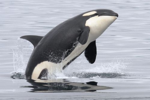 シャチの大きさは、オスは全長6〜8m、体重3.6〜6トン、メスは全長5〜7m、体重1.5〜4トン。最大級の個体では体長10m、体重10トンに達することもあり、アフリカゾウに匹敵する巨大な体と力強さを持っています。