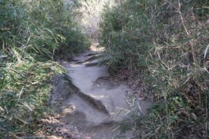 *ハイキングコースは自然の山道です。舗装されていない所、岩(石)が表面に出ている所、ロープづたいに歩く所、木製の階段をあるく所などがあります。滑りにくいトレッキングシューズがおすすめです。歩きやすい服装や、登山に適した靴を履くなど、十分な準備をしてください。雨の降った後はぬかるんで特に滑りやすくなりますので十分にご注意ください。
