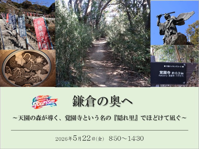 北鎌倉から「古都の奥座敷、覚園寺」へ。歴史と絶景を凝縮したショートハイキング。ガイドの解説とナビゲーターのサポート、眩しい新緑と頬をなでる柔らかな風。自然の力強いエールを感じながら歩を進めましょう。