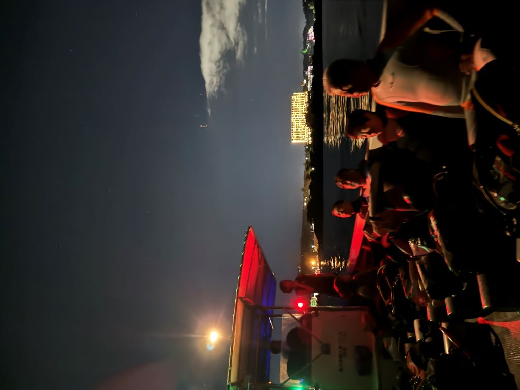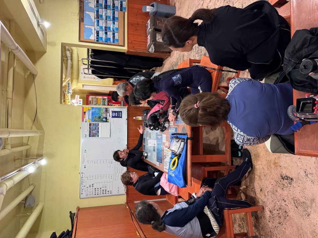 ナイトダイビング前のブリーフィング(ダイビングの事前説明)を聞くときも真剣そのものです。そして、いざ、ナイトダイビングへ。。。