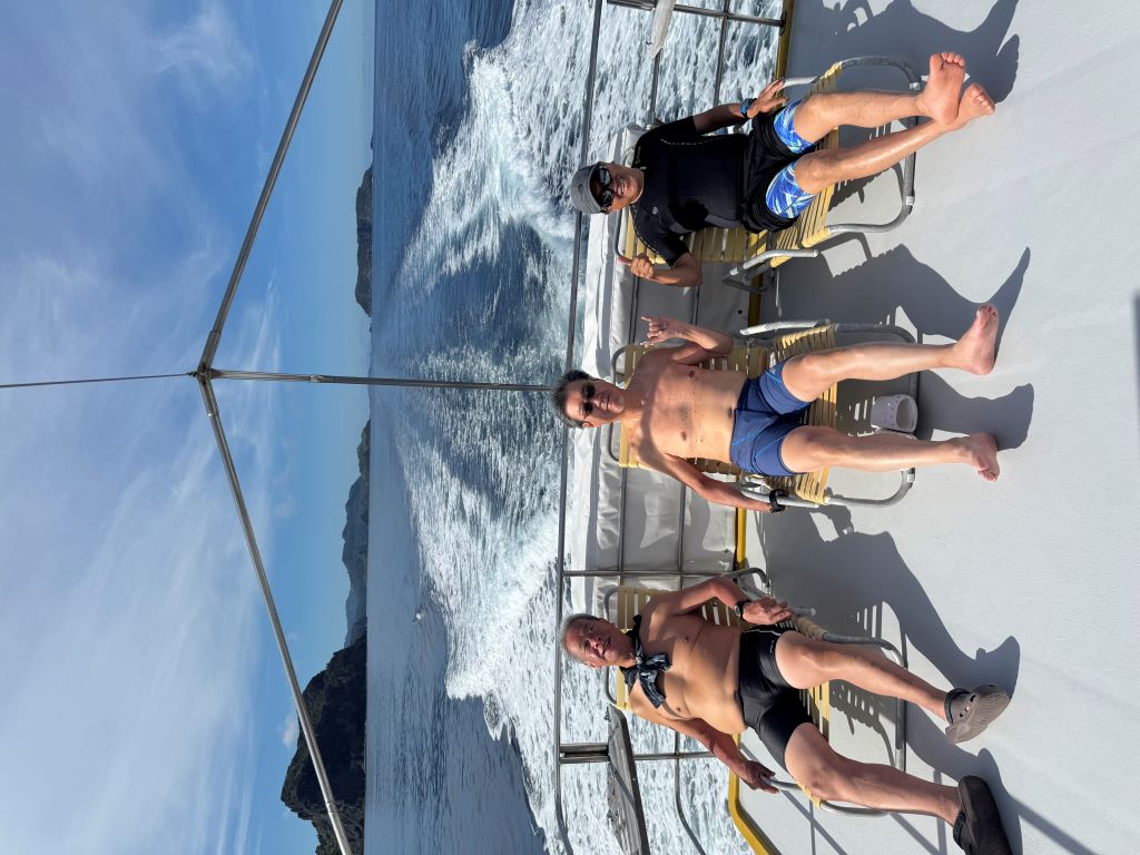 そして、今回の目玉は、ダイバー憧れのケータ列島への遠征!!!移動中も笑顔が絶えません。