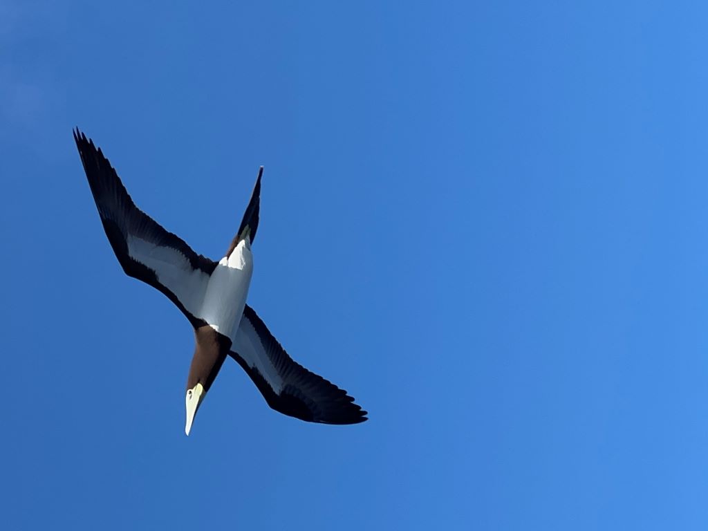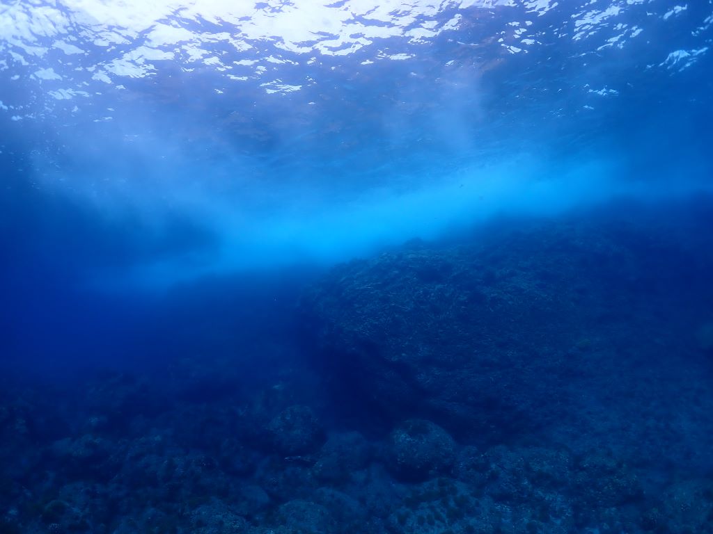 なんといっても圧巻だったのは、水中でイルカに遭遇。へたくそな泳ぎをしている生物に好奇心いっぱいというように私たちを横切っていきました。