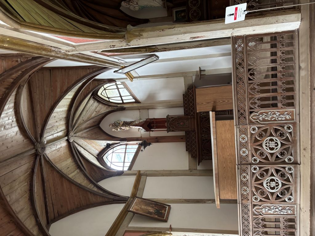 世界遺産を巡るツアーに出ました。写真は左から久賀島の旧五輪教会とその内装(世界遺産)、五輪教会、奈留島の江上天主堂(2枚、世界遺産)です。