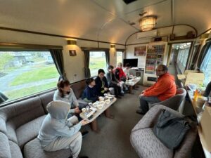 北斗星のラウンジでの朝食。さすが北海道、朝は少し寒かったです。