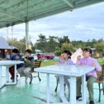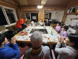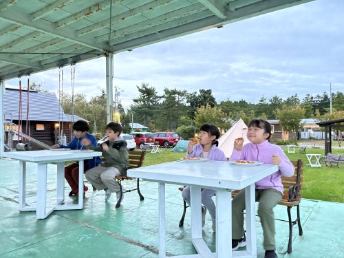 夕食は北斗市の食材を使ったバーベキュー。みんなでわいわい楽しみました。