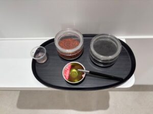 おいしい昼食をいただいた後は、そのまま2階の漢方ギャラリーへ。食事の前後には、血圧と血流の測定をセルフで行いました。