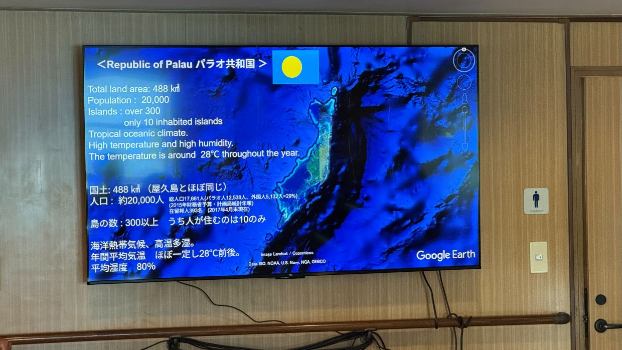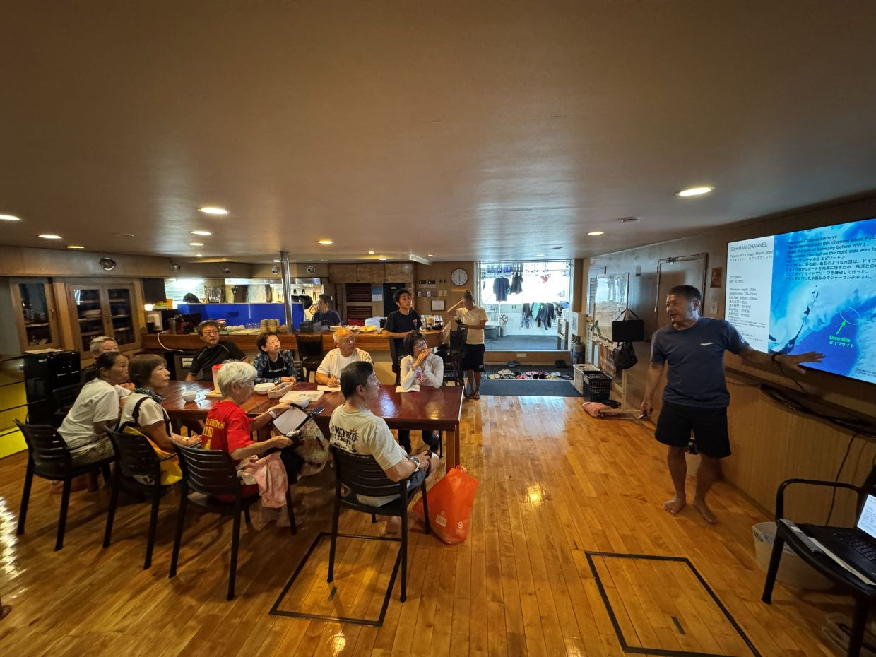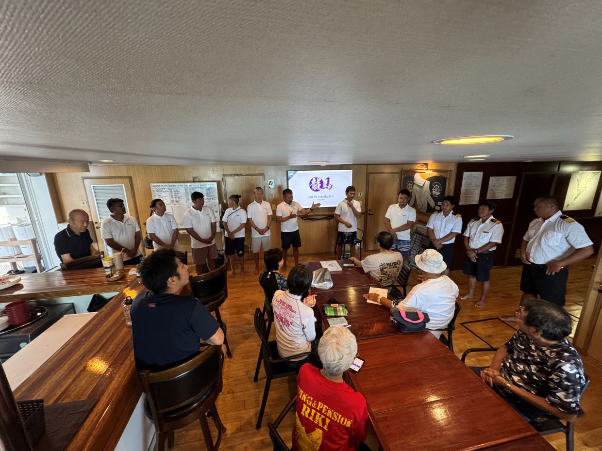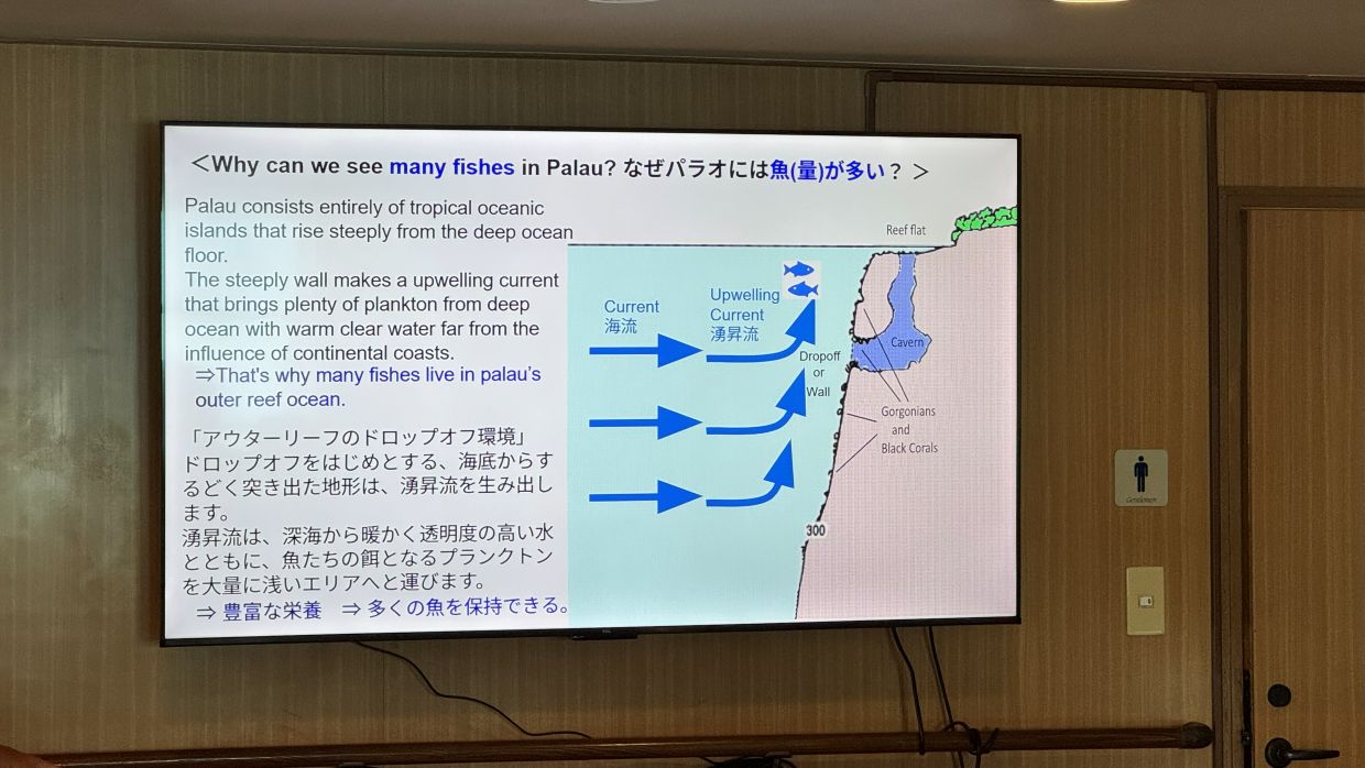 パラオに到着後、さっそく『龍馬号』に乗船です!明日からのダイビングのレクチャーを受けて、準備万端です。