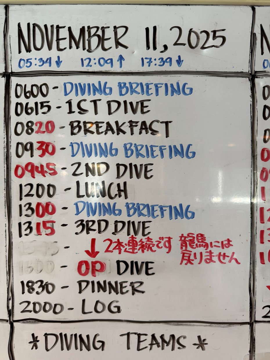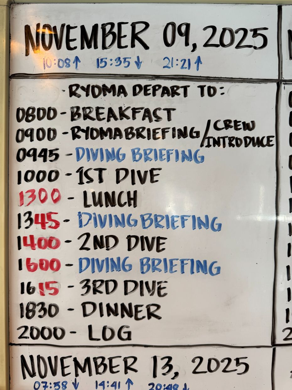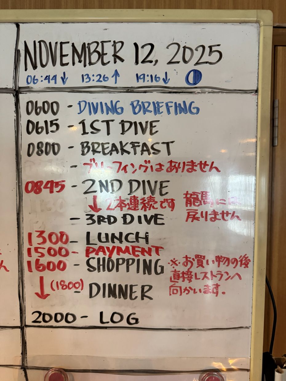 パラオに到着後、さっそく『龍馬号』に乗船です!明日からのダイビングのレクチャーを受けて、準備万端です。