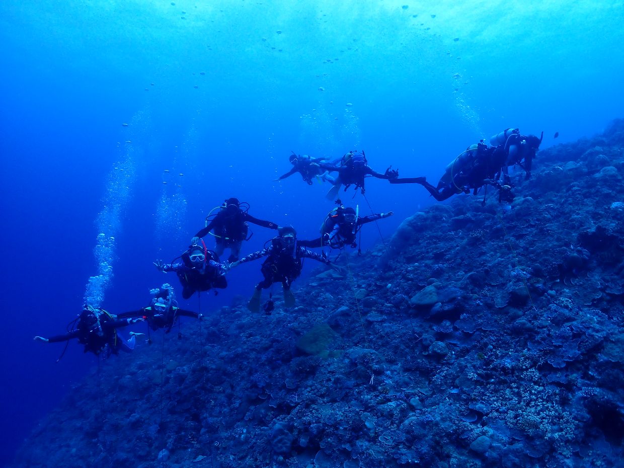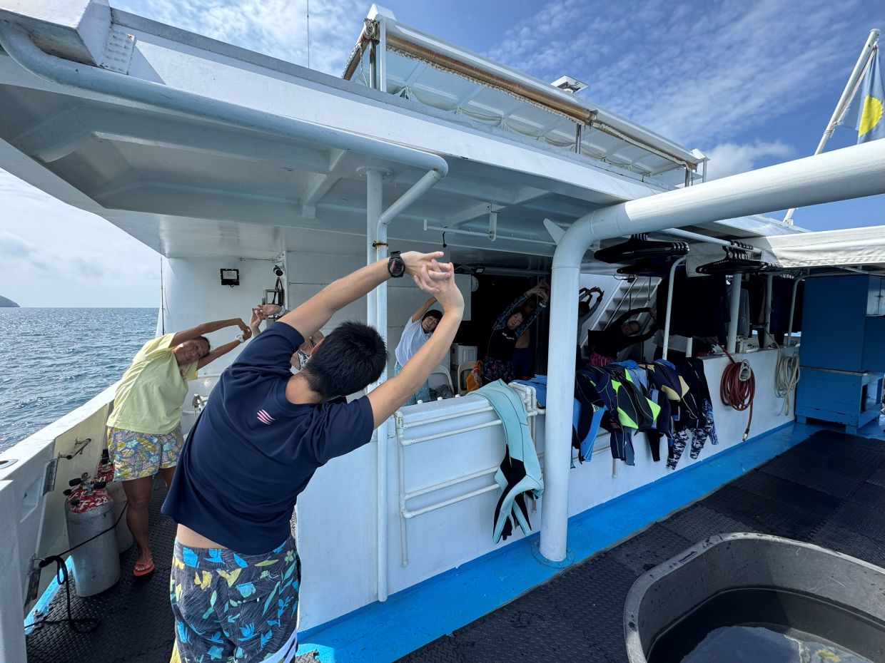 いよいよ、ダイビングスタートです。どんな海に出会えるのかドキドキですが、その前に、準備体操ではやる気持ちをおさえます。