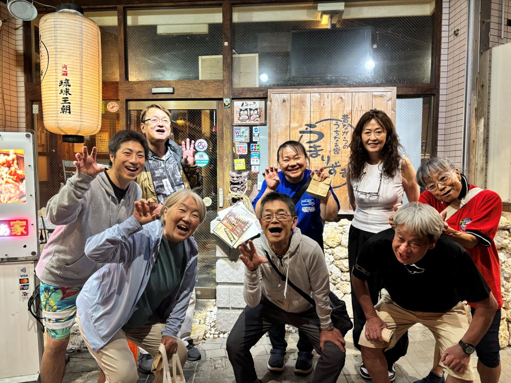 宮古島の陸も毎日堪能させていただきました。みなさんで「たのしーさー」とパチリ!