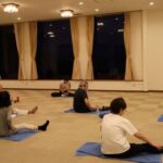 ガラス越しに海を眺めながらモーニングエクササイズ。あたりはまだ暗く波の音も静かです。集中して身体を動かしていたら、いつの間にか周りは明るくなっていました。