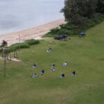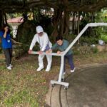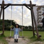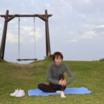 朝のお散歩とピラティスを楽しみました。シーサイドホテル内の芝生でアーシング。波の音をBGMに行うピラティスはとても贅沢でした。念願のブランコにも乗れて、童心に返られていました。
