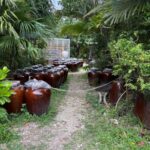 【石垣の塩】どこかで見かけたことがあると思います。ここに工房がありました。今から約300年前に、石垣島名倉湾の海水をくみ上げて作ったのが始まりだそうです。”何も足さない、何もひかない”八重山諸島の海水のみで作られた自然の恵みです。工房の外に置いてある壺の中には海水が入っており、ここに「にがり」を入れて7.8年かけてお塩を作るそう。からだによさそうです。