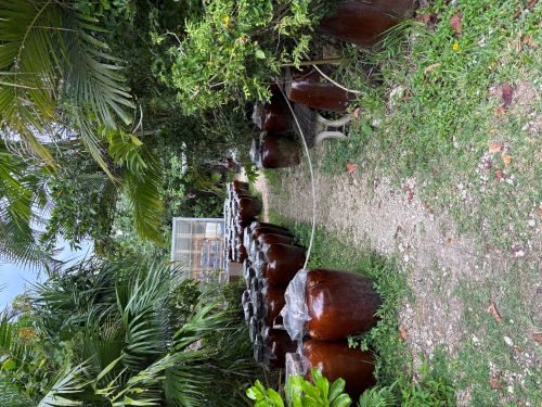 【石垣の塩】どこかで見かけたことがあると思います。ここに工房がありました。今から約300年前に、石垣島名倉湾の海水をくみ上げて作ったのが始まりだそうです。”何も足さない、何もひかない”八重山諸島の海水のみで作られた自然の恵みです。工房の外に置いてある壺の中には海水が入っており、ここに「にがり」を入れて7.8年かけてお塩を作るそう。からだによさそうです。