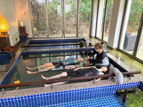 八重山の美しい海洋環境の中で、豊潤な海水に含まれる❝天然ミネラル❞を独自の技術で抽出・濃縮した「ミネラルプール」に浮きながら、シンギングボウルの倍音を肌で感じ過ごす究極のデトックス体験。死海の海の次に濃度が高いと言われている貴重な環境です。
