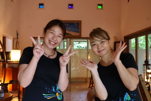 デトックスの前後は、二手に分かれてビーチやお庭をお散歩。少し疲れたらアジアン家具やモロッコの置物が置いてあるラウンジでのんびりします。
