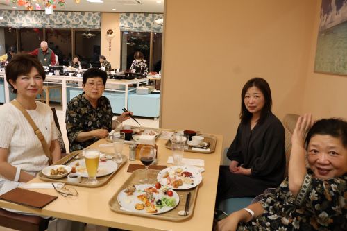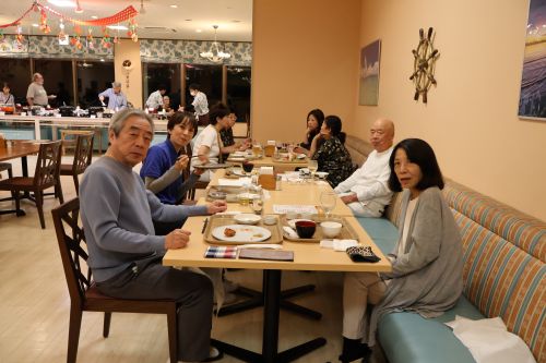 夕食は石垣シーサイドホテルのビュッフェ。沖縄の名物や皆様の大好物が並び、目移りするほどのメニュー。デザートまでたどり着けませんでした。お一人参加の方も多い中、皆さんすぐに打ち解け会話も弾み、楽しく時間は過ぎていきました。