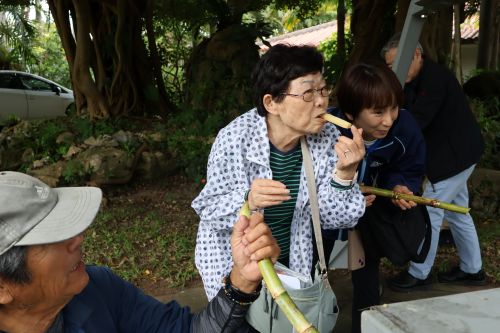 この「さとうきびジュース」「ゆぬくもち」作りで一致団結した結果、一気にお互いの距離が縮まり、おやつを食べる時は、みんな自然体となり、楽しくて笑いが止まりませんでした。まるでさとうきびの魔法にかかったようでした。
