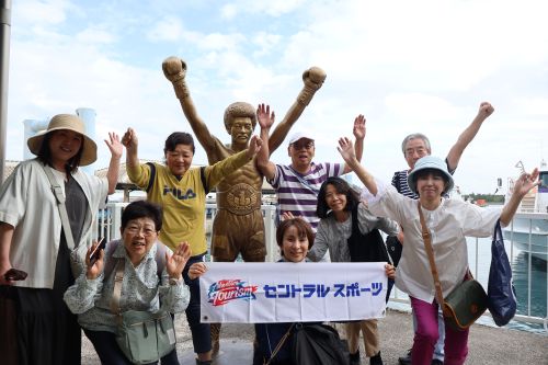 午後は、公共のバスを使って、石垣市街地へ繰り出しました。具志堅用高氏の銅像の前でガッツポーズ。