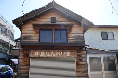 左:創業102年の歴史をもつ中島煎餅屋。この日はお休みでした。次回また立ち寄りたいお店です。