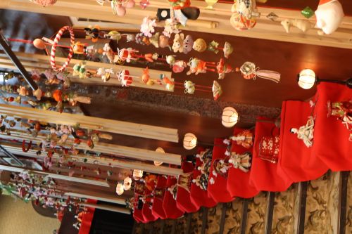 1670年(江戸初期)に一代目がお店を起こし、今や十四代目の店主が経営する老舗の割烹です。広いお店には、代々伝わる雛人形や最新の雛人形など、所狭しと飾られています。午前中に岩槻の街を歩きつくし、春真近じかの今に相応しい『雛祭り膳』をいただきました。