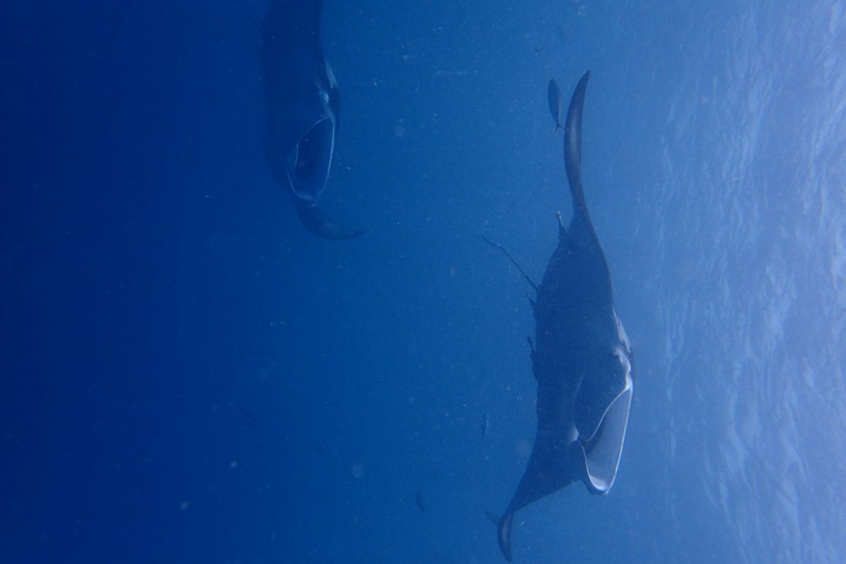 移動中にボート上から、マンタがお出迎えです!自然に期待も膨らみます!