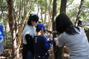 ・秘密基地づくりは、レンジャーの方に魅力的に進めていただき、親子の良い体験となりました。