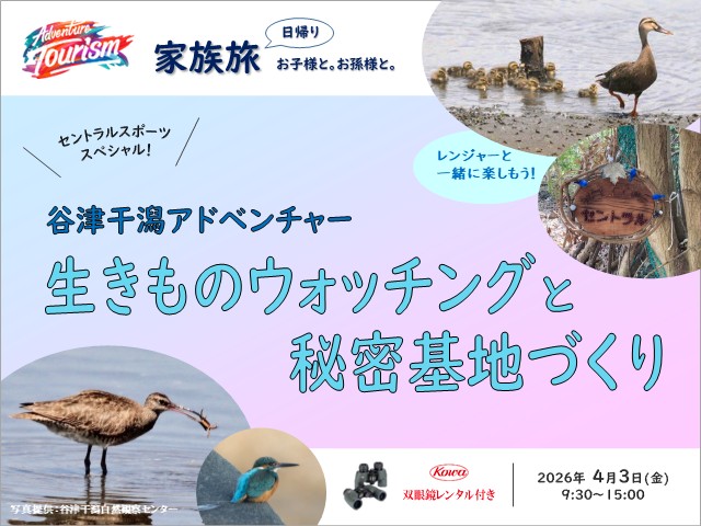 谷津干潟(千葉県習志野市)にて、家族で『生きものウォッチングと秘密基地づくり』を行いました。ツアー前後の日は雨だったにも関わらず、当日はなんと!晴れでした!南船橋駅に集合し自然観察センター到着後、『谷津干潟』についてと双眼鏡の使い方の説明を聞いたのち、谷津干潟ビンゴ(生きものウォッチング)が始まりました。