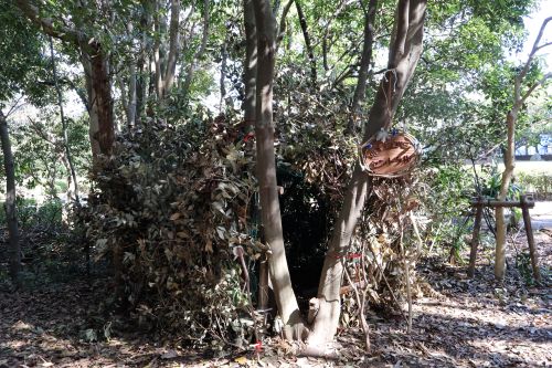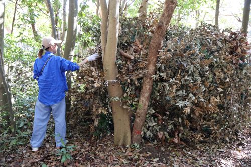 ネットを枝や枯葉で覆う!