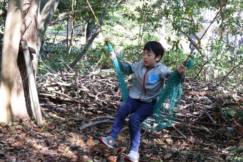 <おまけ>レンジャーさんが、ラダーとぶらんこを紐とネットで作ってくれました。